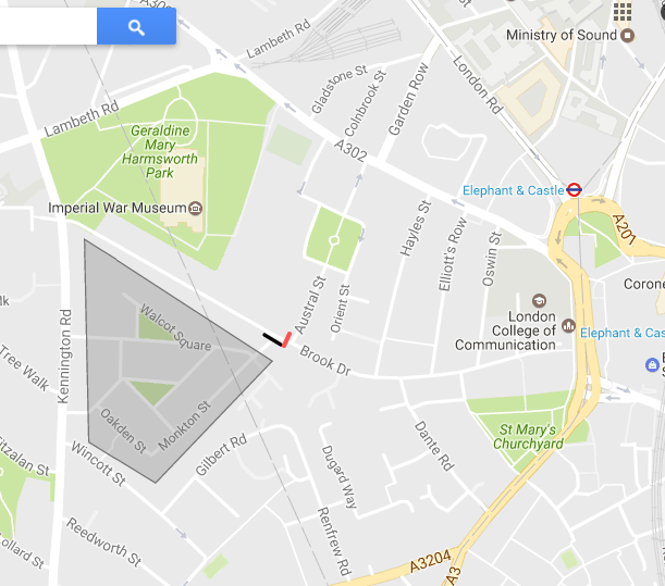 Drivers from Westminster Bridge or Lambeth Bridge are allowed to cut through Brook Drive to reach Walworth Road rather than take the A roads.